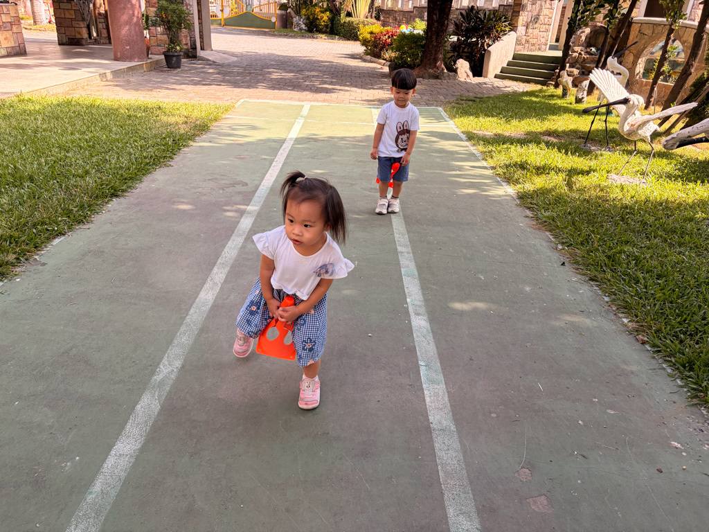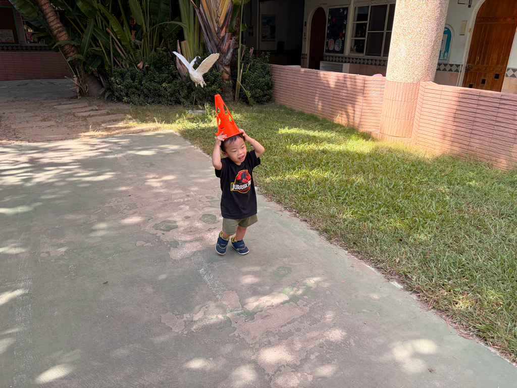 我會用角錐變成超人、戴帽子遊戲真好玩喔!