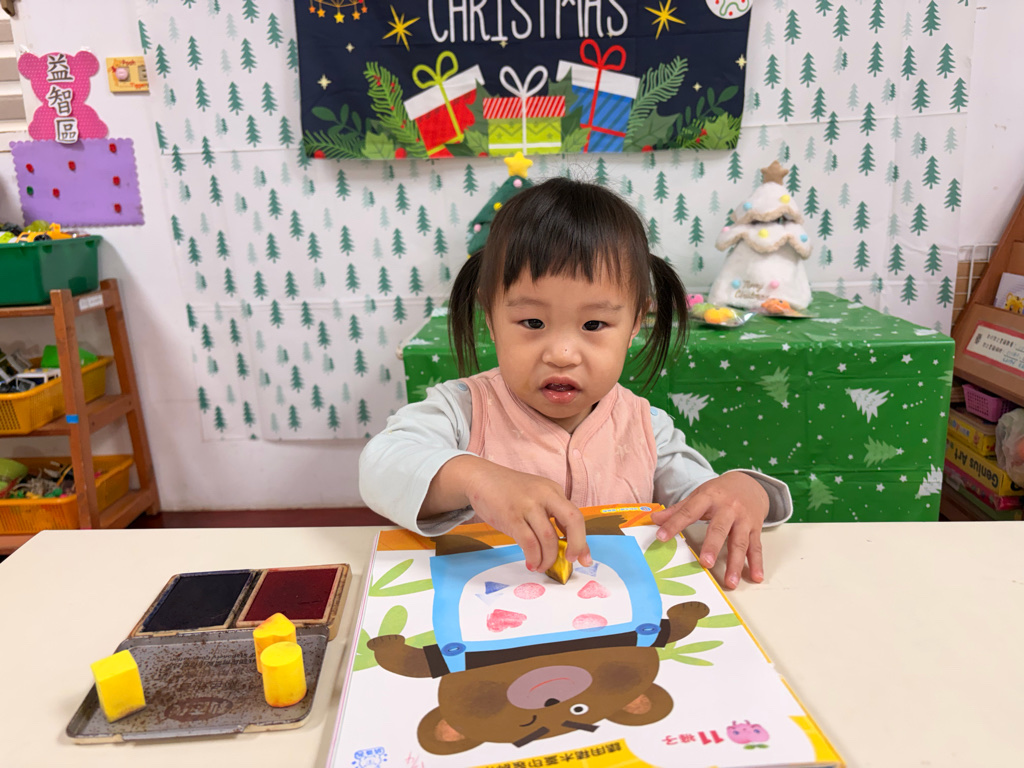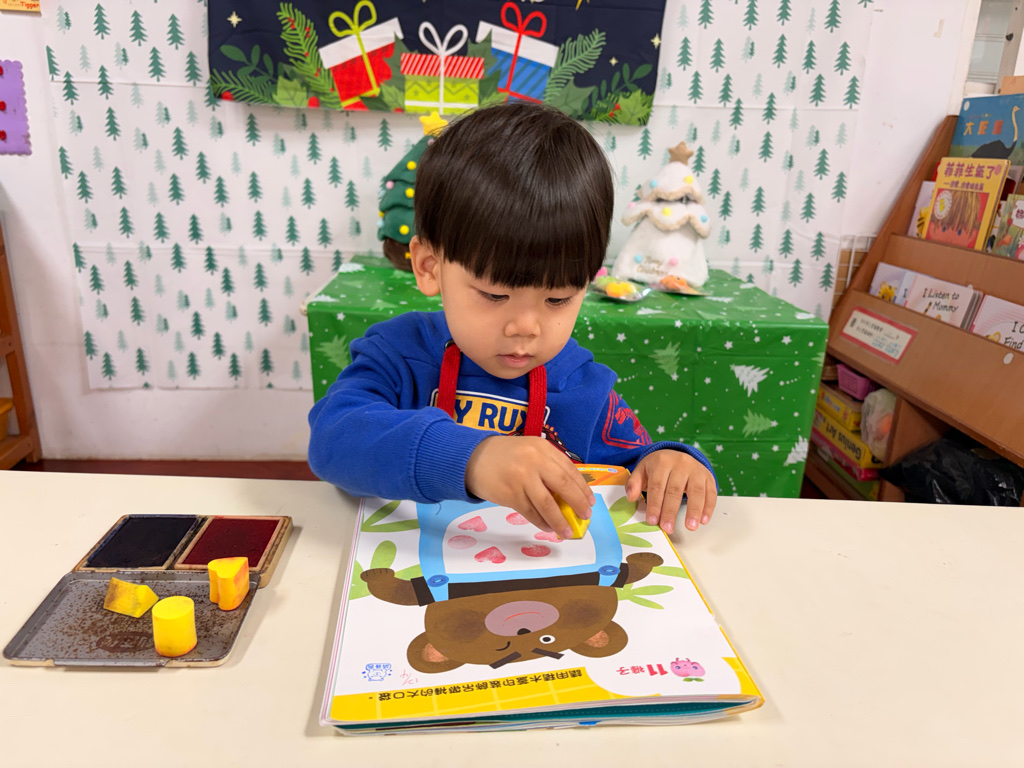 我會幫小熊褲子蓋出好多形狀圖案喔!